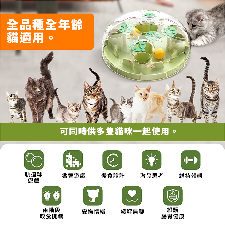 .益智 × 軌道球 × 慢食設計的全方位貓咪互動玩具