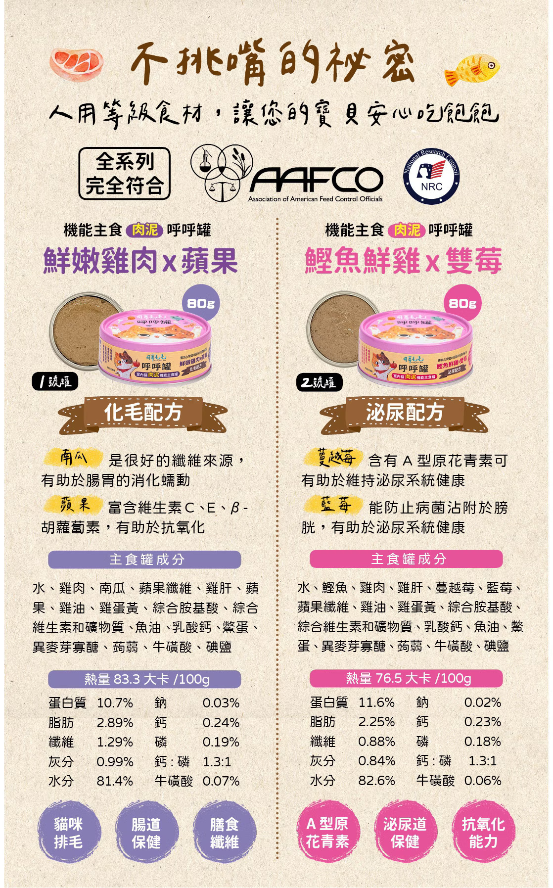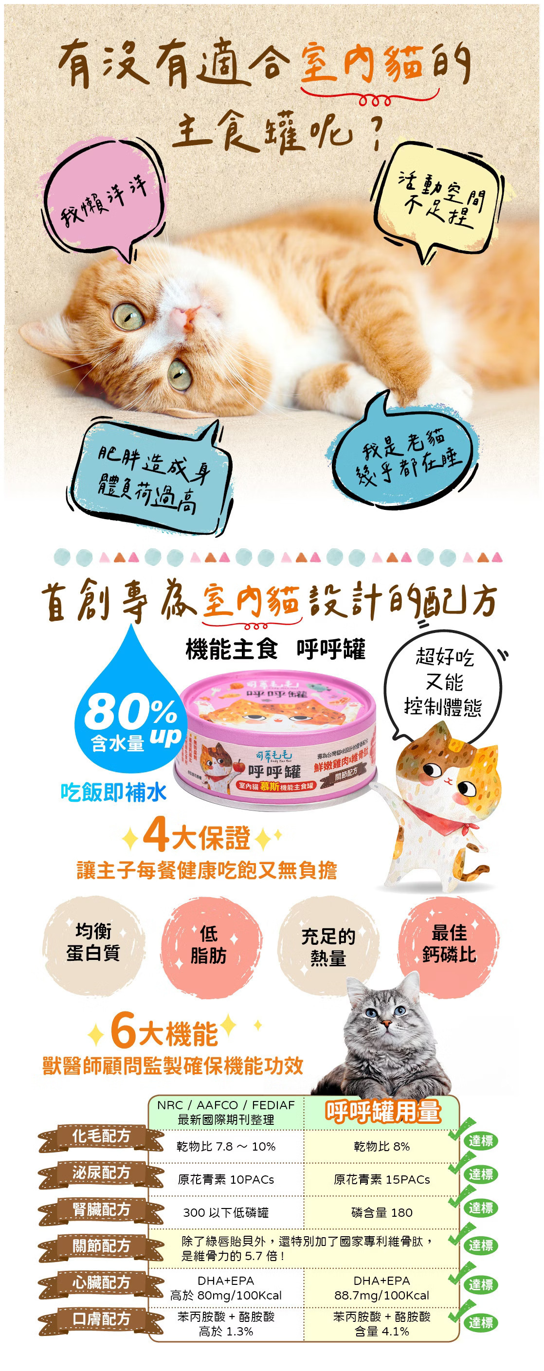 • 市場獨家專為【室內貓】量身設計的機能主食罐