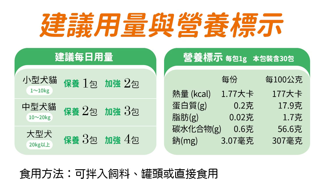 • 創造業界第一適口性,一天只需一次,一次補充【1公克】
