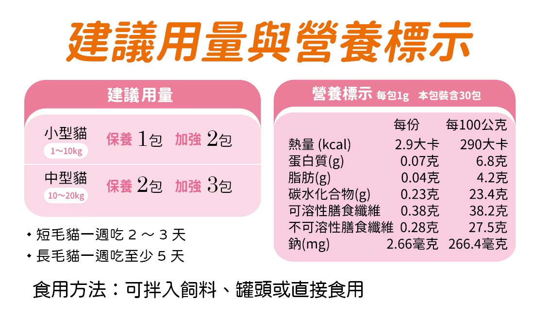 • 創造業界第一適口性,一天只需一次,一次補充【1公克】
