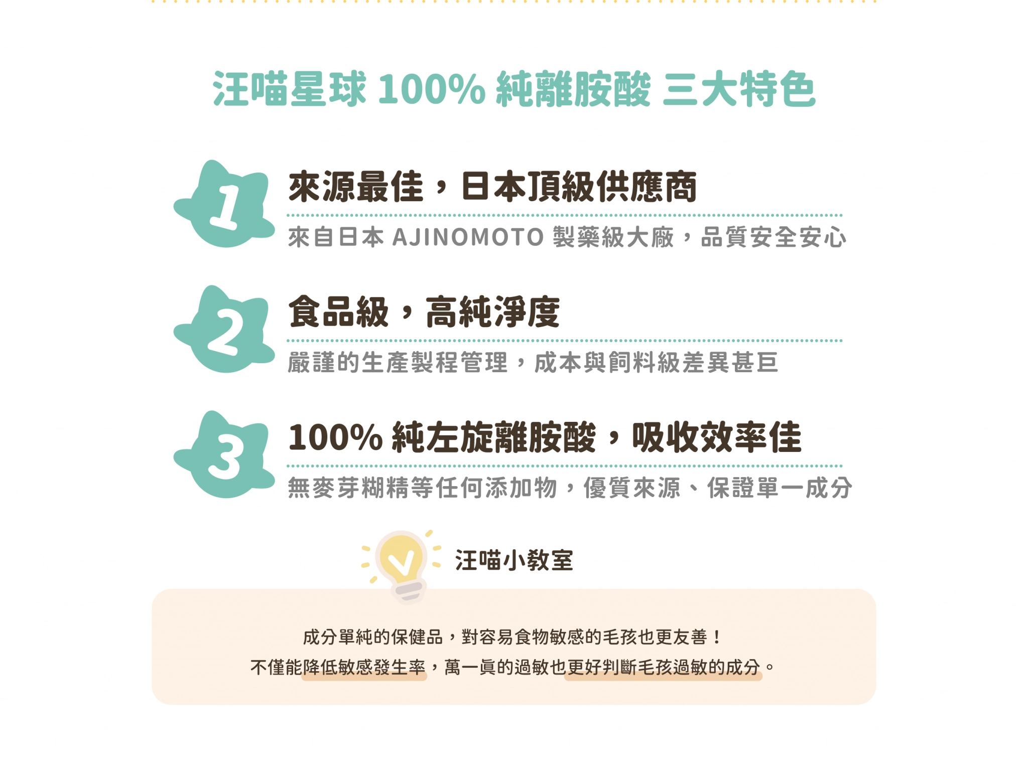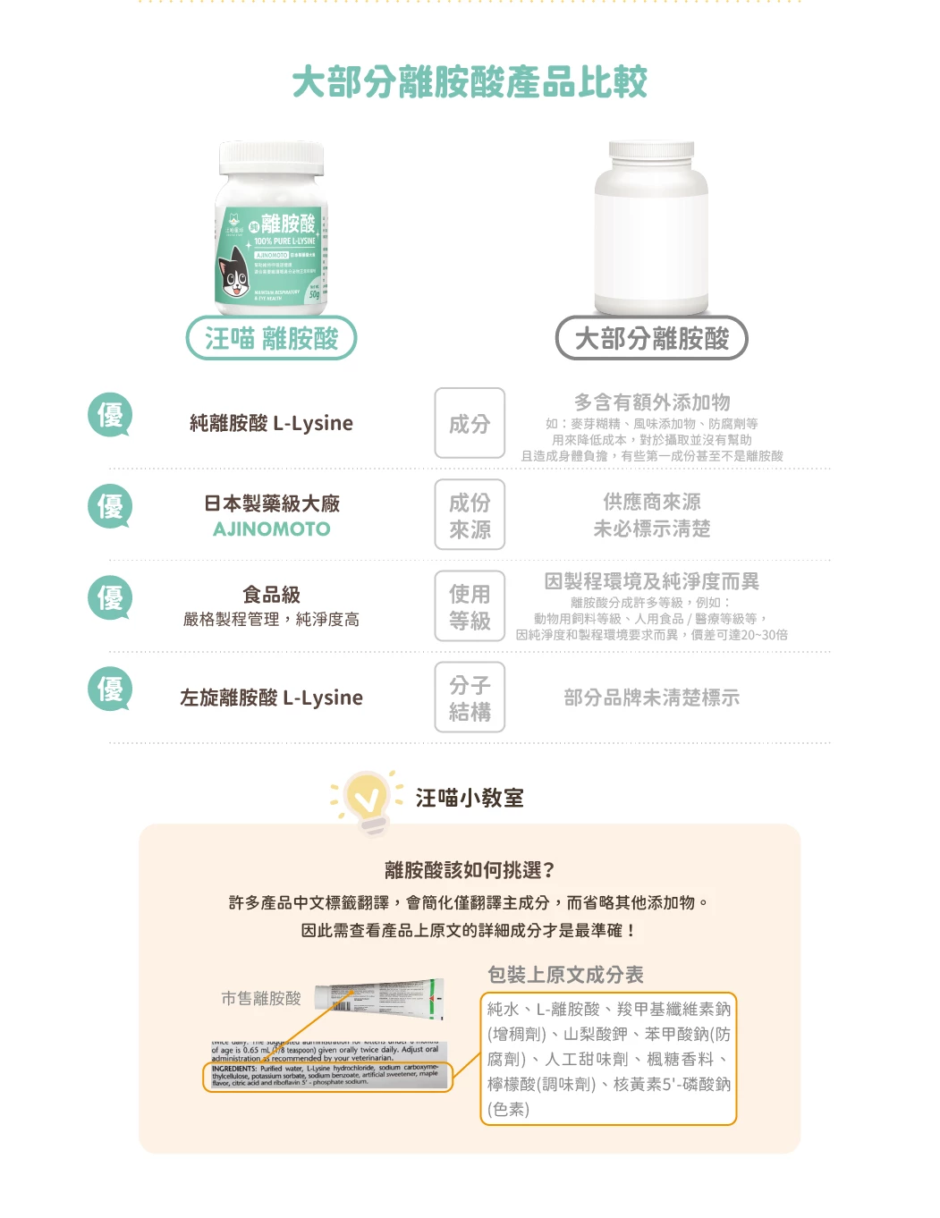 • 100%日本製藥大廠 Ajinomoto 純淨離胺酸
