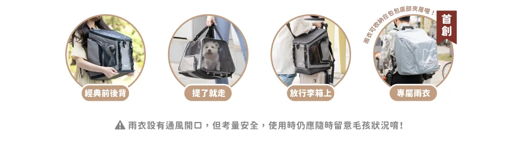 • 背包專屬雨衣,為毛孩擋風遮雨!
