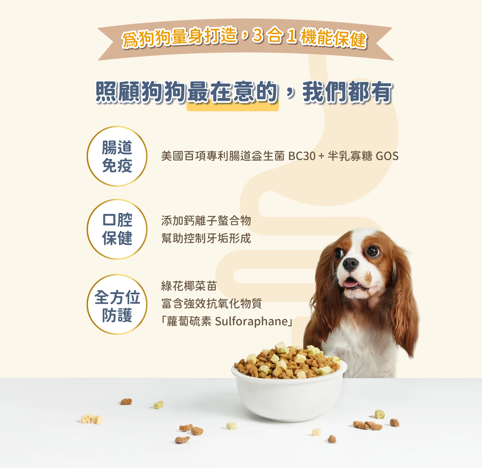 • 85%新鮮原肉+12%蔬果食材+3%機能保健
