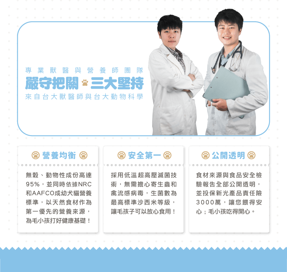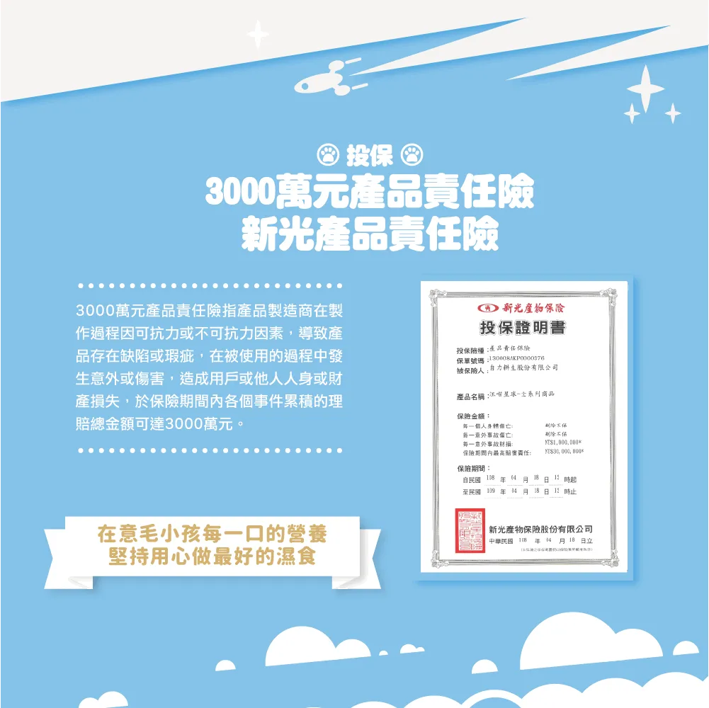 • 依據最嚴格的國家生食標準設計,每批自主送檢
