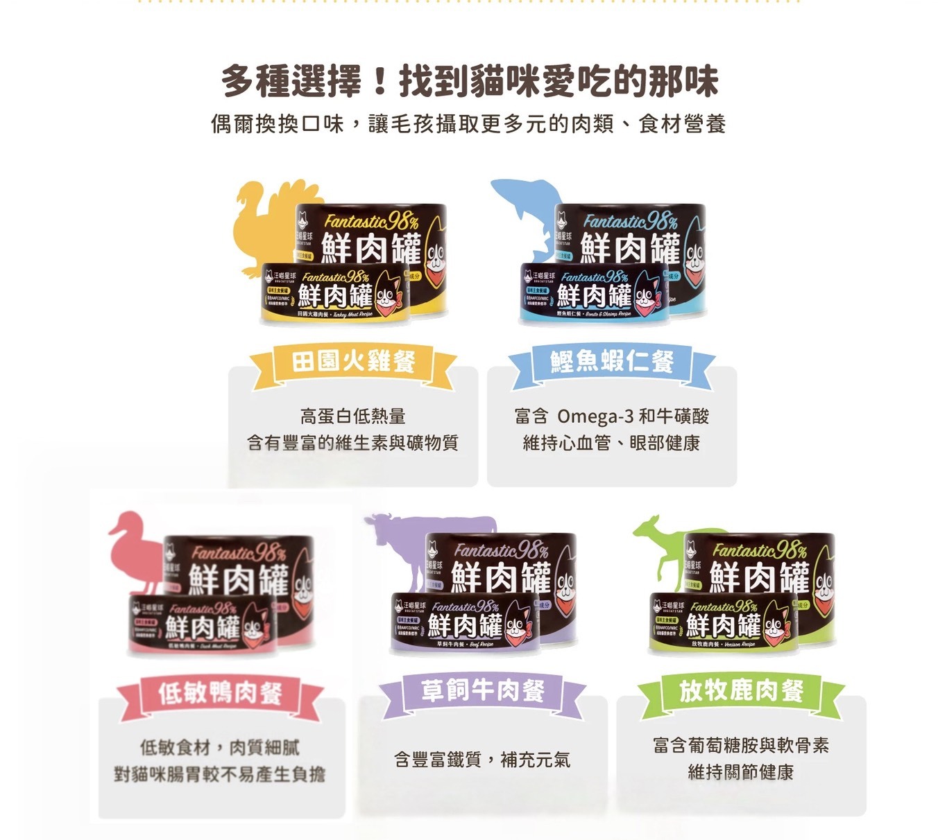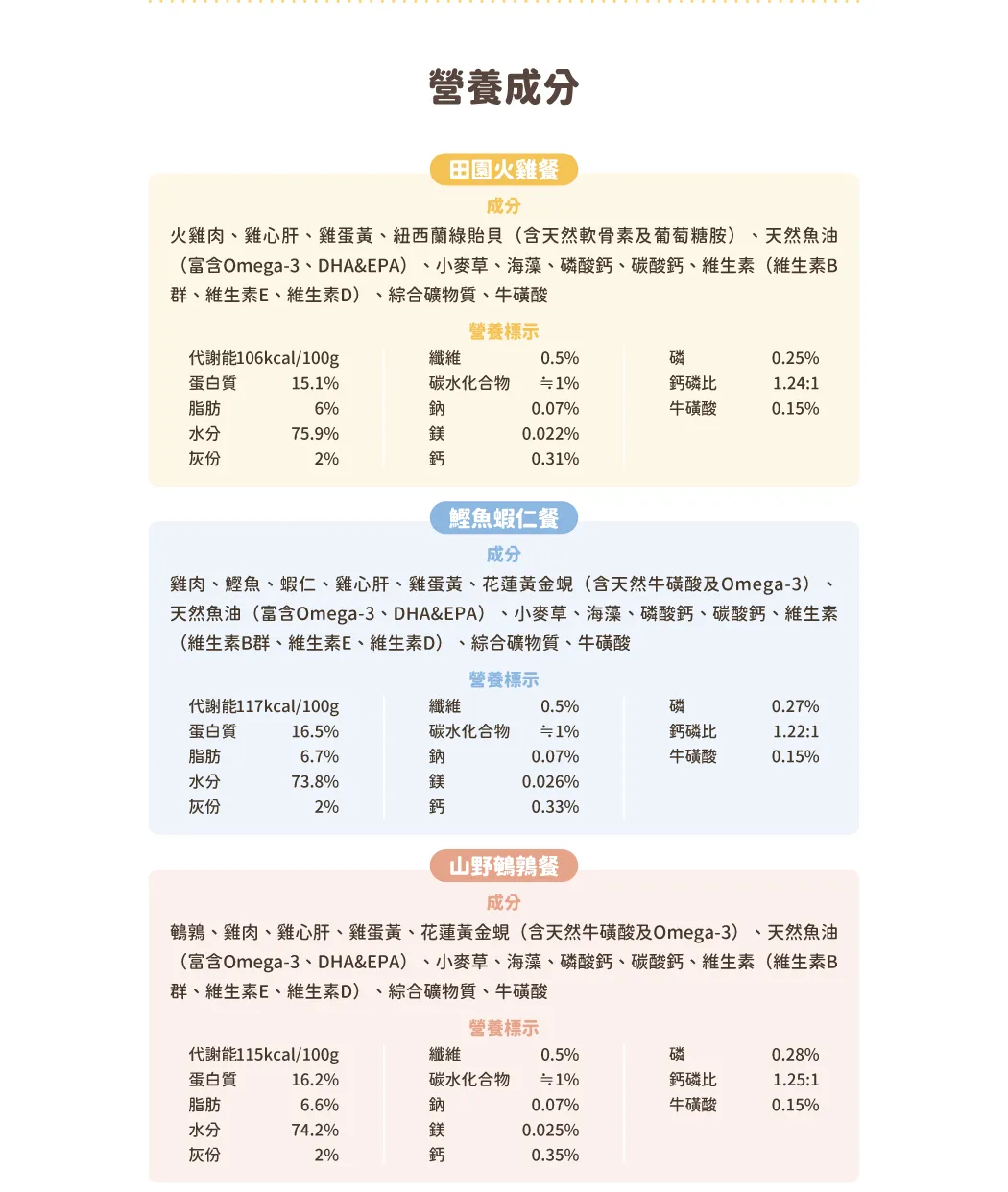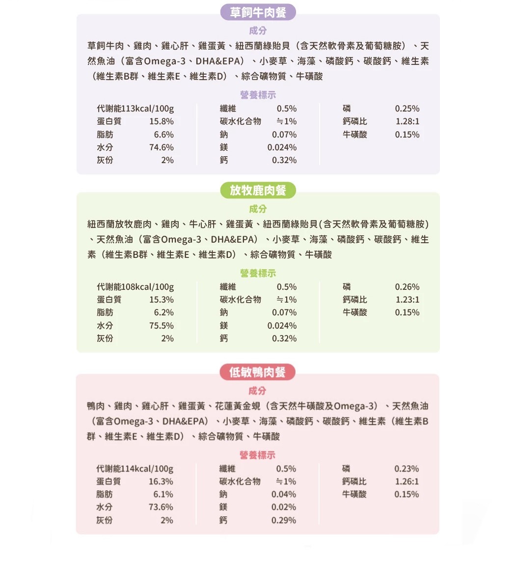 • 98% 鮮肉及內臟+2% 植物與必需營養素