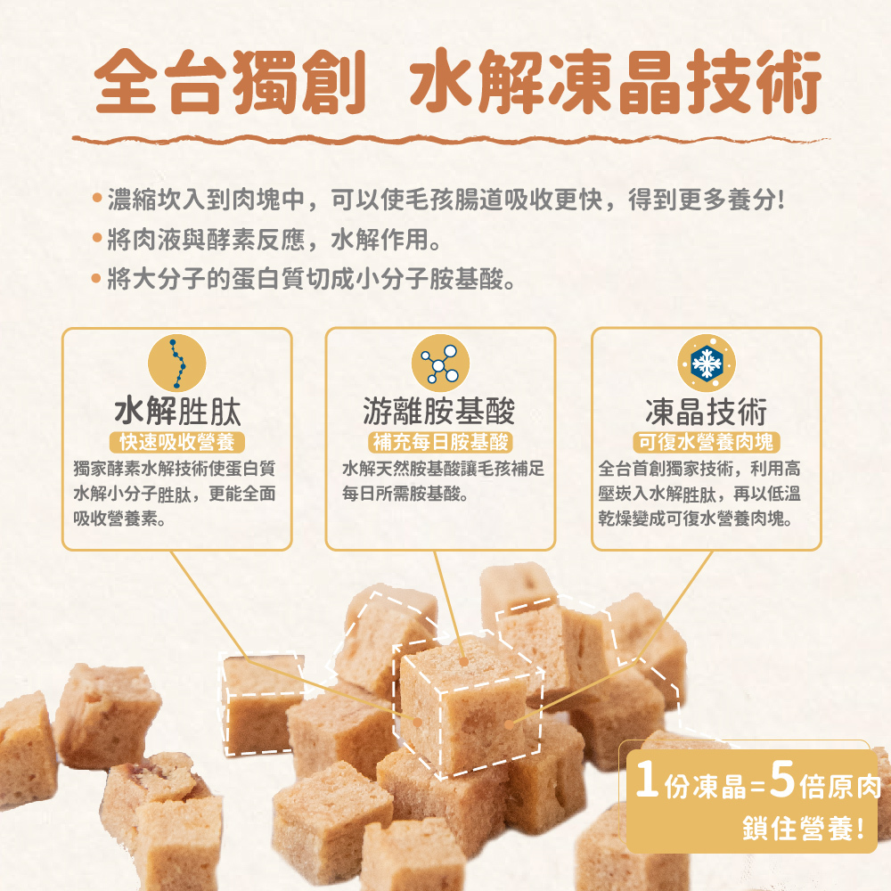· 全台獨創水解凍晶技術,低敏且鎖住更多營養
