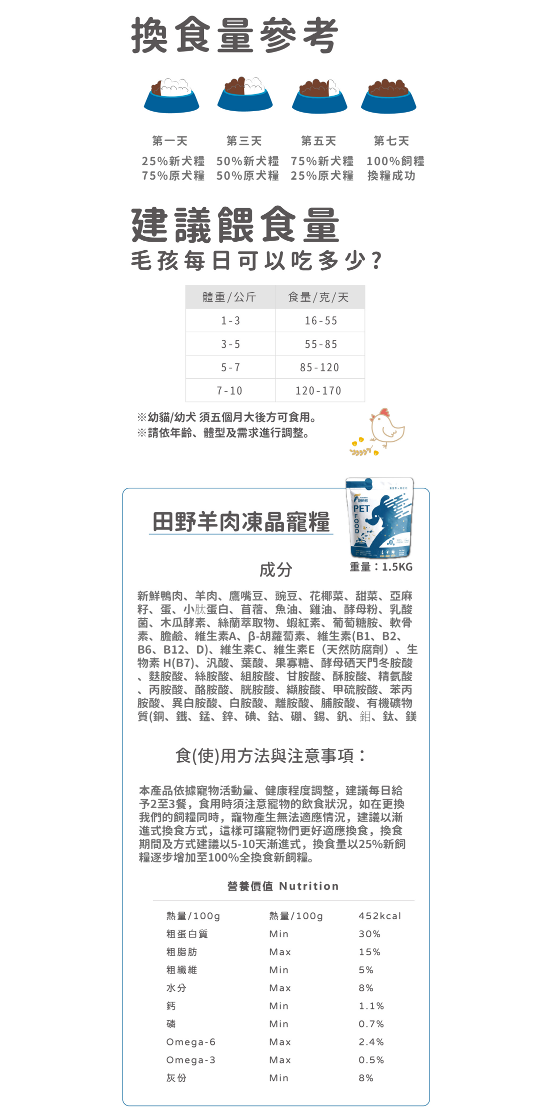飼糧倉|無穀凍晶犬糧 田野羊肉1.5kg